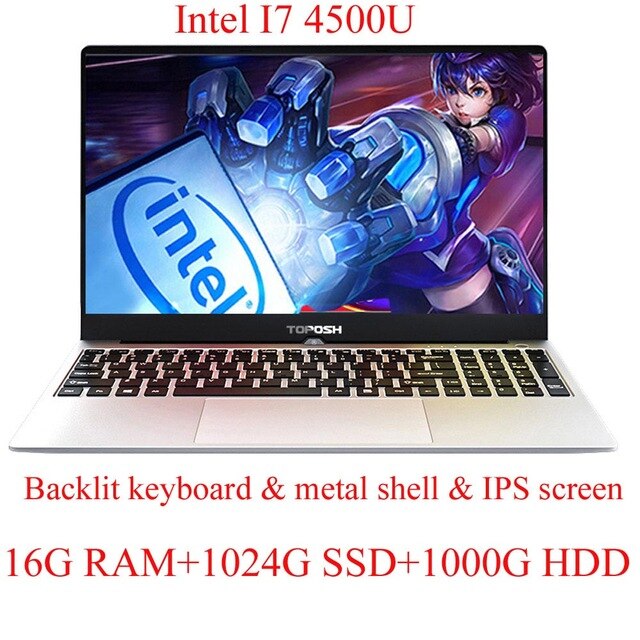 16GB RAM Quad Core Intel i7 4500U Laptop Computer 15.6 Inch Metal Shell Notebook Windows 10 Dual Band WiFi Full Layout Keyboard