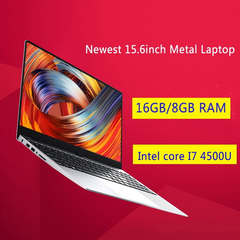Gaming laptop 15.6inch Metal Body Intel i7 4500U 16GB RAM Windows 10 Notebook for Student Game Office Work with BT WiFi Webcam