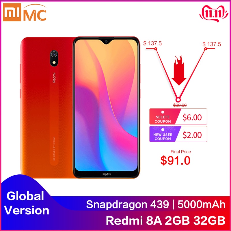 Global Version Xiaomi Redmi 8A 8 A 2GB 32GB 6.22" Snapdargon 439 Octa core Mobile Phone 5000mAh 12MP Camera Smartphone