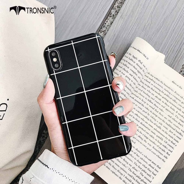 TRONSNIC Plaid Phone Case for iPhone X XS MAX XR Soft Silicone Black White Case for iPhone 6S 7 8 Plus Luxury Covers Hot Fashion